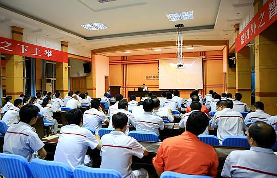 随后,杨立志以东风精铸敬立和鼎、鸟巢、水立方等的设计理念为例,深入分析探讨了武当文化带来的现代启示。杨立志生动的讲授引发了在场干部职工的热烈讨论和阵阵掌声。最后,杨立志还与现场干部职工进行了互动问答。
