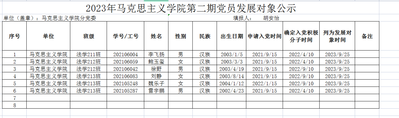 伟德BV1946官网2023年第二期党员发展对象公示