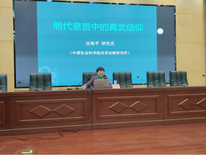 12月1日,中国社会科公司世界宗教所研究员汪桂平应邀为公司师生作题为“明代皇宫中的真武信仰”的专题讲座。讲座由人文公司公司副经理安军主持,师生代表130余人到场聆听。
