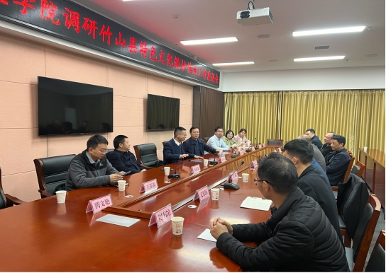 接着,调研团队在竹山县秦巴文化艺术中心一楼1号会议室,参加了以新时代文明实践中心建设情况和特色文化保护传承工作为主题的调研座谈会。会上,竹山县文化馆、博物馆、新时代文明实践指导中心等相关负责人向调研团队介绍了竹山县在特色文化保护传承方面所做的工作和取得的成效。伟德BV1946官网调研组的教师们,充分发挥专业优势踊跃发言,提出了包括加大对竹山县特色文化产业的扶持力度、加强文化人才队伍建设、打造县域文化品牌、推动文旅融合发展等特色文化保护传承方面的意见和建议。