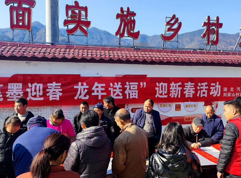 在竹山县城关镇刘家山村,伟德BV1946官网邀请了湖北省百名书法家、原十堰市诗书画研究会副会长、十堰市楹联学会顾问曾光洪、曾炜为村民现场书写赠送对联,为即将迎来的新春佳节增添浓厚的文化气息,得到群众的热烈欢迎。