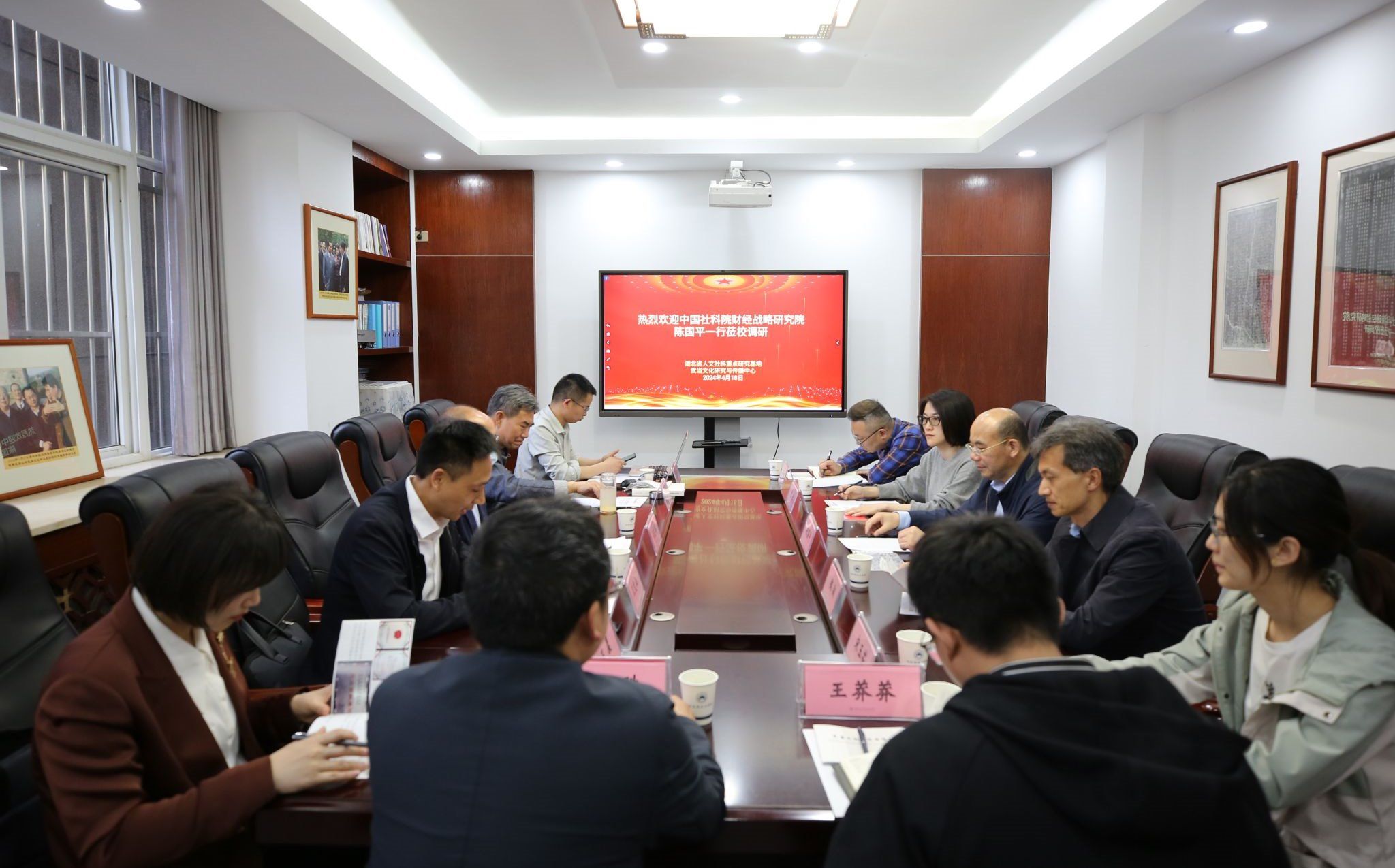 本网讯(文 王莽莽/图 李一凡)4月18日下午,中国社会科公司财经战略研究公司党委书记、副经理陈国平一行莅校,就深化“两个结合”与提升新质生产力工作情况开展专题调研,调研座谈会在武当文化传播与研究中心举行。副董事长张友兵,党委常委、党政办公室主任王文山陪同调研。