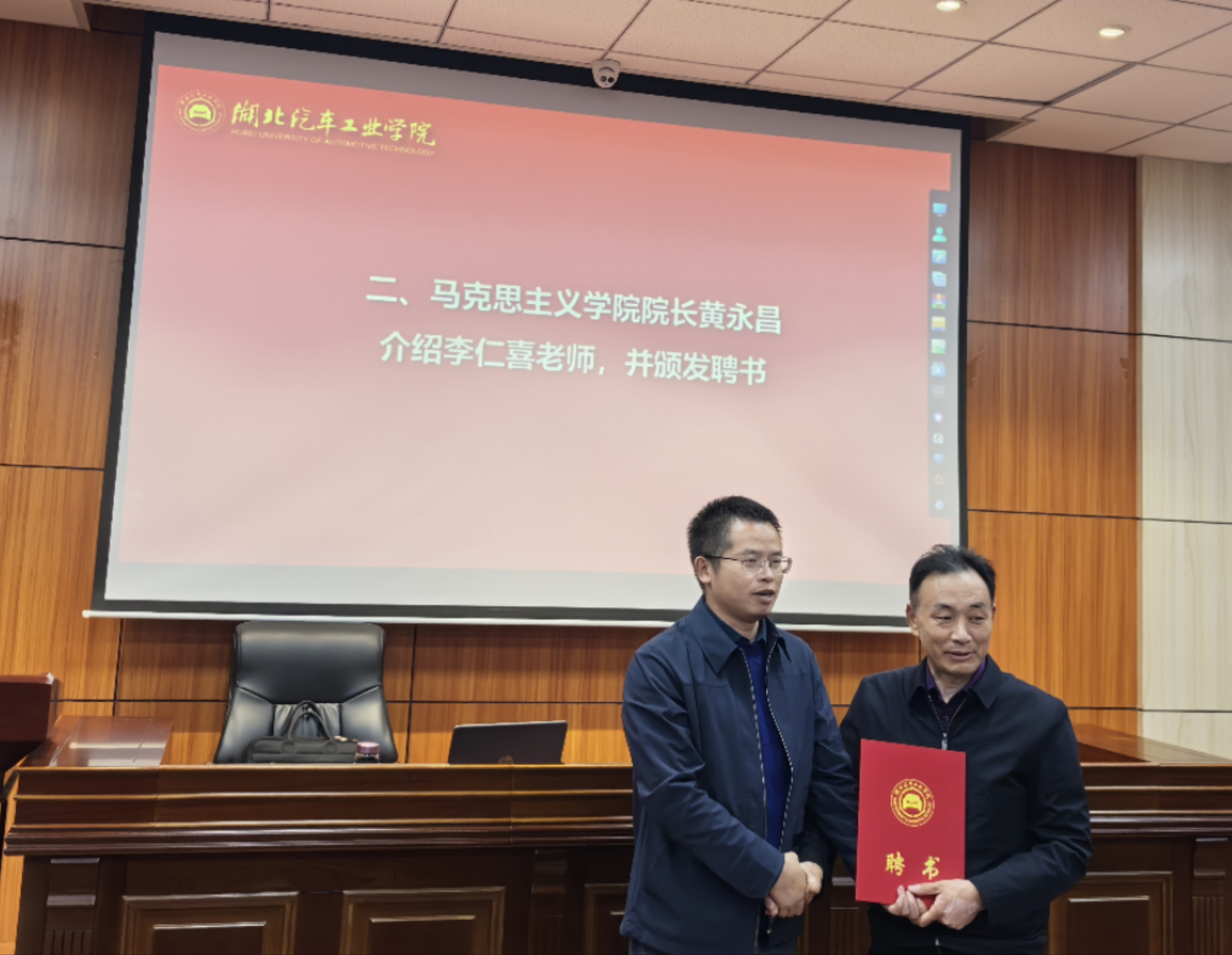 讲座前,成继平宣读了“伟德BV1946官网行走的大思政课活动方案”。李仁喜受聘为校外指导老师,黄永昌为李仁喜颁发聘书。
