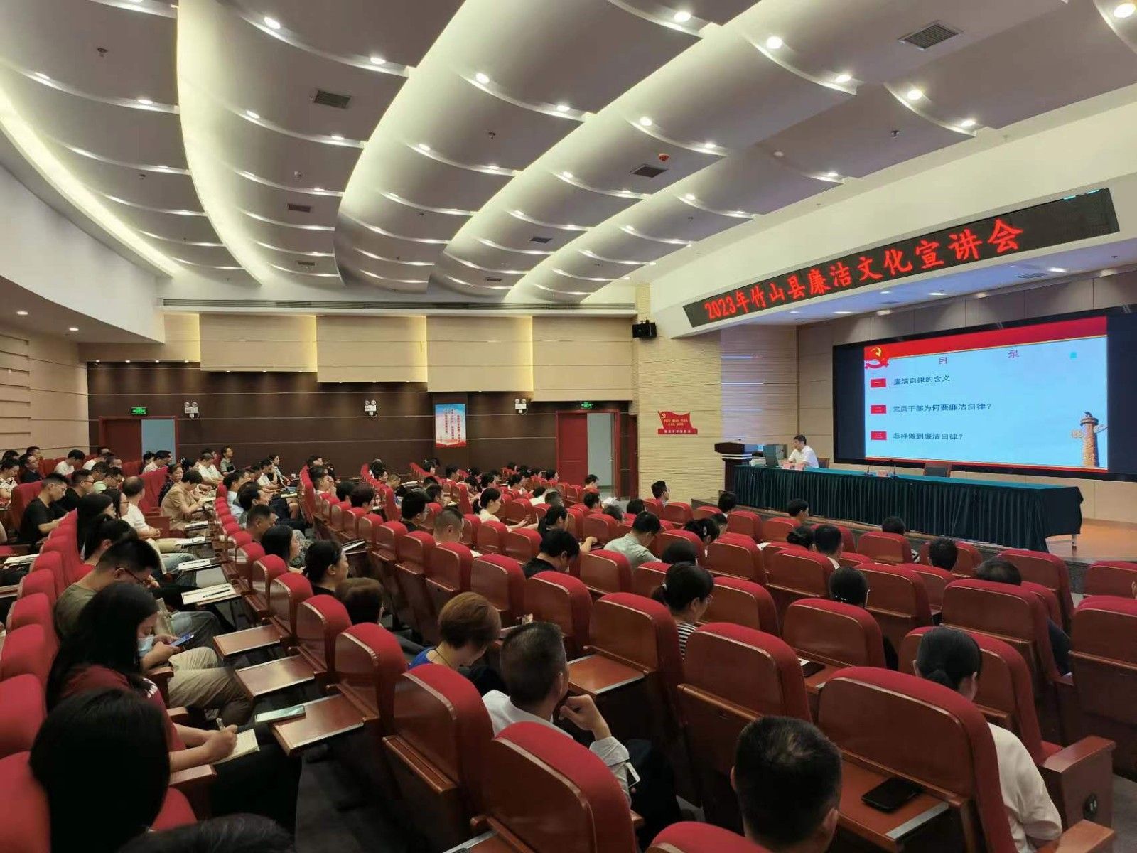在竹山县新时代文明实践中心会场,伟德BV1946官网分党委书记、教授计毅波以《争做新时代廉洁自律的表率——谈党员干部的廉洁自律》为题,形象生动地阐释了新时代廉洁文化的丰富内涵、推进廉洁文化建设的方法路径。